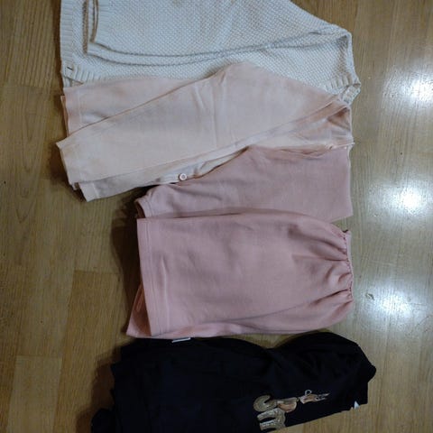 8kpl pitkähihaisia paitoja (Kaikon gepardi -paikassa edessä pistetahra), 3kpl leggings ja 1 mekko.