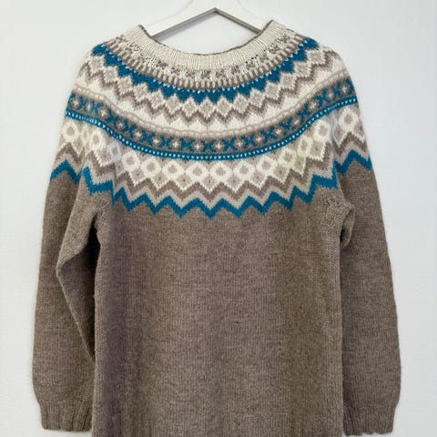 Norjalainen neuletakki koko L, mitta kainalosta kainaloon 57, olka helma 68, kainalo hihansuu 50, paksumpaa villaa, oikein hyvä kunto.