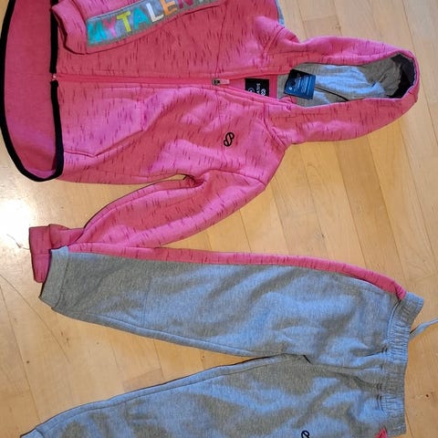 Pulan tummansiniset collegehousut ja Hello Kitty kääntötakki, molemmat paksumpaa collegea