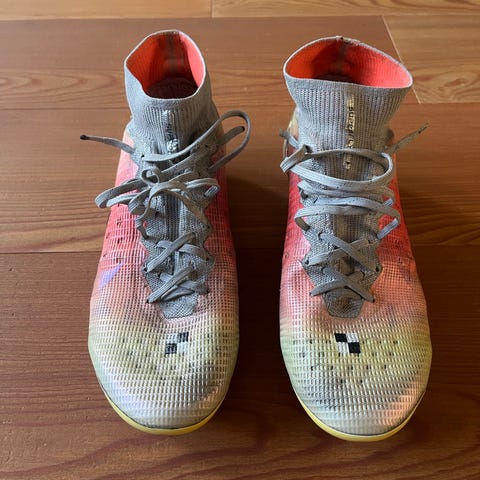 Huipputason jalkapallokenkä nappikset. DJ5165-600. US 6, UK 5.5, EUR 38.5, 24 cm. Tekonurmelle sopivat AG napit. Kevyttä ja kestävää Nike Flyknit materiaalia. Pieni halkeama vasemman kengän pohjassa päkiän kohdalla. Ei pohjallisia mukana. Nouto. Maksu käteinen tai mobilepay.