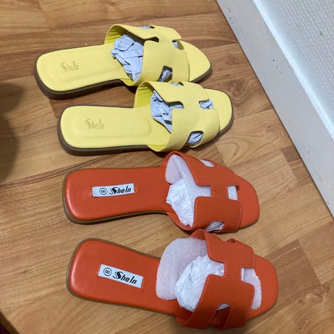 Nahkaiset nilkkaremmillä olevat uudet sandaalit. Kengän korko on 5 cm ja koko 38.