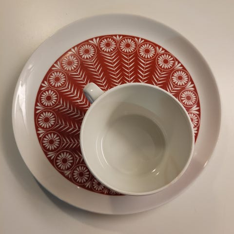 Hyväkuntoinen, vanha Arabian Riikinkukko aamiaissetti