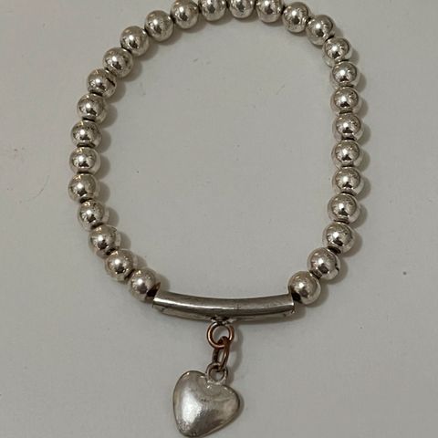 Hopean värinen (ei oikeaa hopeaa) rannekoru, kuminauhoilla joten joustaa kun laittaa käteen.