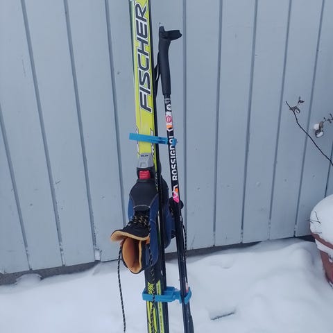 Suksisetti: 120 cm pitopohjasukset, 31,5 koon monot sekä n. 1 m pituiset sauvat. Käytetyssä kunnossa, mutta ehjät edelleen. (Suksien pidikkeitä kuulemma tarvitaan vielä, joten ne eivät kuulu kauppaan.) Nouto Kirkkonummelta.