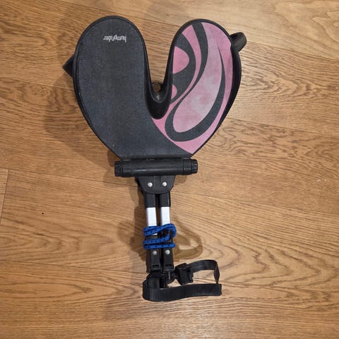 Täysin ehjä ja hyväkuntoinen Bumprider seisomalauta irrotettavalla istuimella. Toki pientä käytönjälkeä on paikoittain, esim. renkaissa, mutta yleisilmeeltä erittäin siisti.