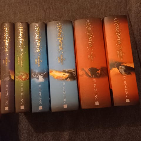 Sarjasta puuttuu ensimmäinen painos eli Harry Potter - Philosophers Stone. Ja uutena tullut keräilytarrasarja.