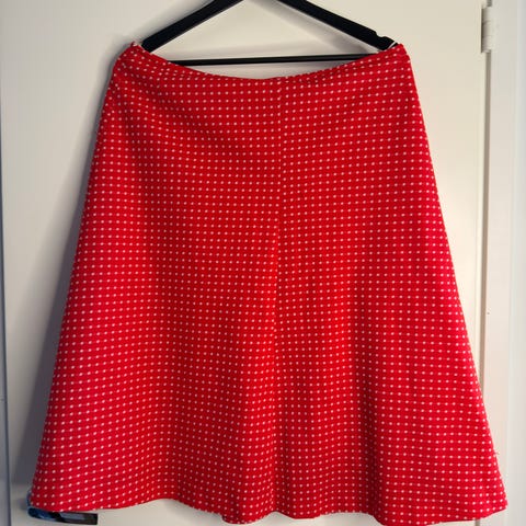 Oikein hyvässä kunnossa oleva, korkeavyötäröinen naistenhame. Koko vaikuttaa ässältä, koossa lukee: 8. Vyötärö noin 70 cm