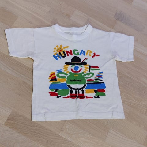 Ehjä lasten keltaraidallinen lyhythihainen paita. Koko: 6-8 vuotiaalle.