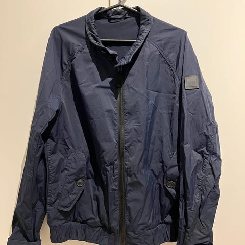 Myydään Hugo Boss tummansininen kuoritakki, koko 52. Irrotettava huppu. Takana kiristysnyöri vyötärön korkeudella. Käyttämätön takki.