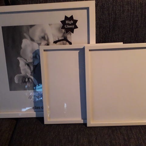 Valkoiset puiset kehykset lasilla. Koko 30 x 40 cm.