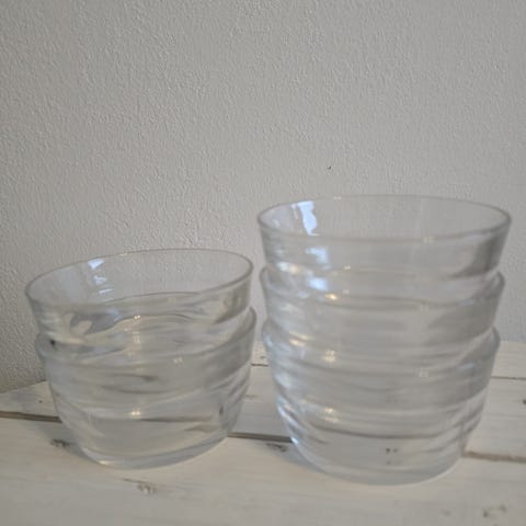 16 kpl lasisia kulhoja tarjoiluun / jälkiruokaan / muroihin tms. Hyvä käytetty kunto, halkeamia tms en löytänyt. Hinta kaikille yhteensä.