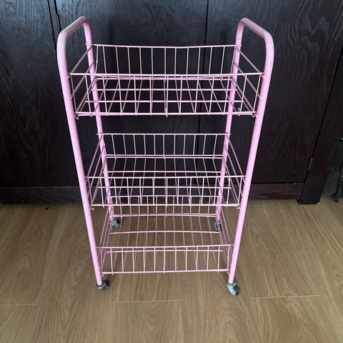 Ikean musta metallinen Nissafors-kärry pyörillä. Kevyt ja helppo liikuttaa. Koottuna.