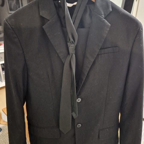 Monia 170cm poikien juhlapuku. Takki, housut, lyhyt kauluspaita ja kravatti. Pari kertaa käytetty. Uudenveroinen setti. Kissa talous.