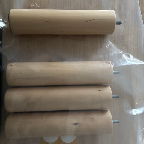 Shamppanjalasin muotoiset sängynjalat / kalustejalat. Virallisesti nämä on ostettu sängynjalkoina, mutta itsellä nämä on ollut Ikean Bestå tv-tasossa.