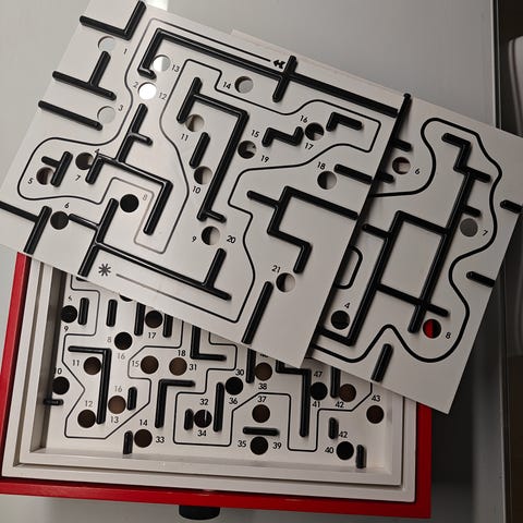 Myymme uuden Brio Labyrinth puinen labyrinttipeli, jossa on säätönuppi pelin vaikeustason muuttamiseen. Peli on valmistettu puusta ja sen tarkoituksena on ohjata metallinen pallo labyrintin läpi ilman, että se putoaa reijistä. Palloa ei ole, sen saa ostettua uutena liikkeestä.