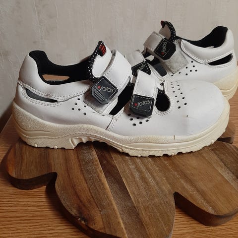 Maahiset terveys-,/työkengät. Olleet työkenkinä vain sisällä. Sisäpohjassa jonkinverran kulumaa.