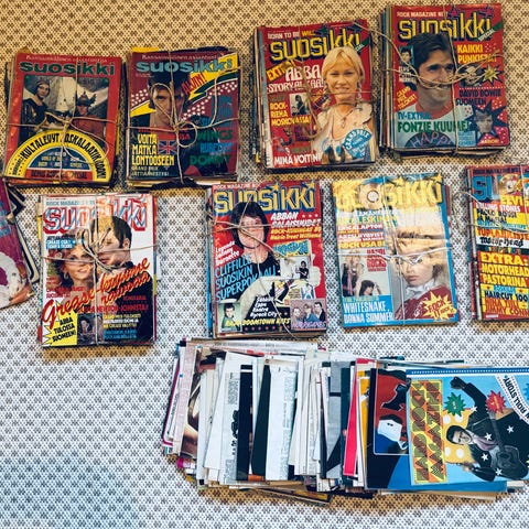 Useita lehtiä myynnissä. Systeri-lehdissä ei ole julisteita kuin vain osassa, muuten pitäisi olla kaikki. Girl:it-lehdissä ei ole kaikissa julisteita ja osassa ei ole takakantta. Demi-lehdet ovat hyvässä kunnossa. Koululainen-lehdissä vain toisessa juliste tallella. Muuten kaikki tallessa.
