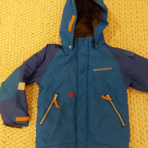Myyntiin Didriksonin punainen hyväkuntoinen toppatakki kokoa 110 cm. Toppatakissa lumilukko.
