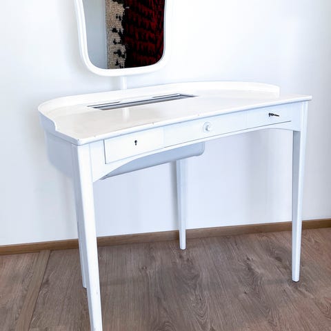 Ostetaan kuvan mukainen hyväkuntoinen ruotsalainen Fröseke AB Nybrofabrikenin peili-/kampauspöytä.