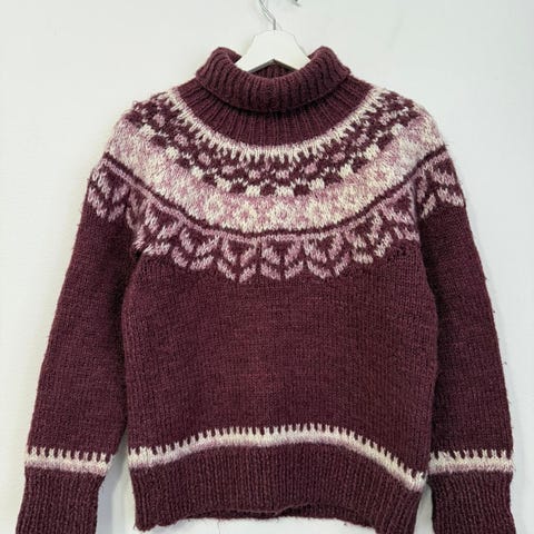 Käsin tehty villapaita koko sopii L, mitta kainalosta kainaloon 55, olka helma 70, kainalo hihansuu 51, pehmeä villaa (mielestäni villa-alpakka), takana alareunassa pieni haalea jälki mutta ei huomattava päällä.