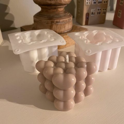 -kuplakynttilämuotit, tilattu aikoinaan pasterol.fi-verkkokaupasta. Neljässä pohjan reikä venynyt, mikä voi vaikuttaa käyttöön ja yhdessä muotissa kyljessä reikä tehtaalta tullessa. Seitsemän näistä kuplakynttilämuoteista on siis vielä erittäin mallikkaat käyttöön.