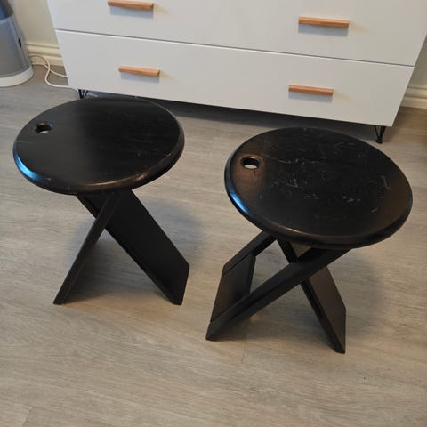 Skagerak Georg Jubilee jakkara. Käsittelemätöntä tammea ja nahkainen pehmuste. Puupinnassa haalea läiskä (ks. kuva). Puupinnan voi käsitellä huonekaluöljyllä. Ovh 849 €.