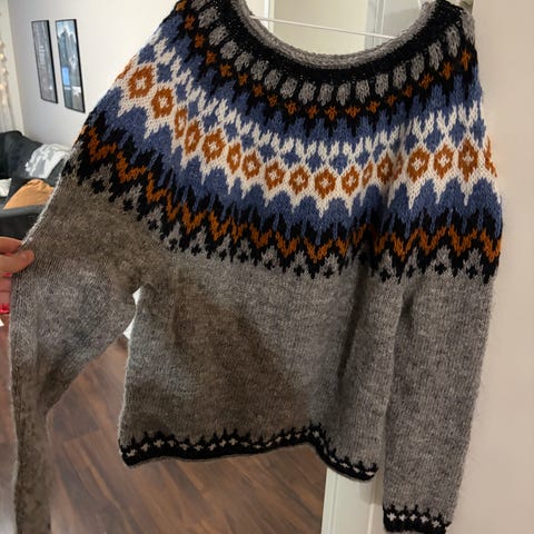 Käsinneulottu. Lanka on Istex Lettlopi, 100% islannin villaa.