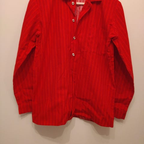 Marimekon hyväkuntoinen käytetty ruudullinen kauluspaita mallia Napitus 2 Kukko ja kana. Väljä laskeutuva malli.