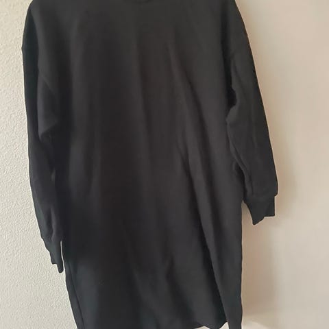 Kuvan musta mekko, v-aukko, taskut sivuilla, eläväinen pinta kankaassa 99%puuvilla/1% elastaania. Käyttämätön.