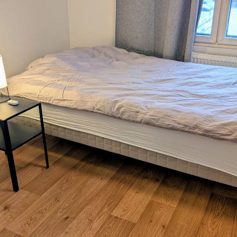 Hyvin vähän käytetty tumman beige kiinteä runkopatja (Ikea Skårer -malli) puujaloilla, ostettu joulukuussa 2024. Mukana tulee Ikean Tussöy petauspatja. Valitettavasti vain nouto on mahdollinen. Myydään muuton vuoksi.