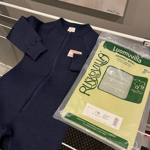 Myydään pieneksi jäänyt luomumerinovillasta tehty haalari. Lähetyskulut lisätään hintaan.