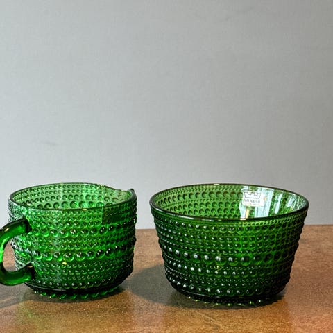 Vaalean turkoosinsiniset sokerikko ja kermakko Iittala Kastehelmi.
