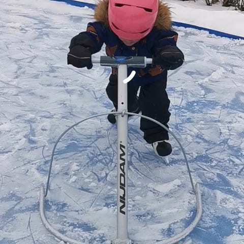 Erinomainen ja kevyt luistelutuki lapselle.