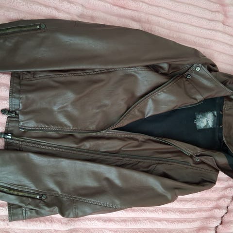 Myydään käyttämätön rock-henkinen tekonahkatakki. Runsaasti yksityiskohtia, jotka näkyvät kuvissa.
