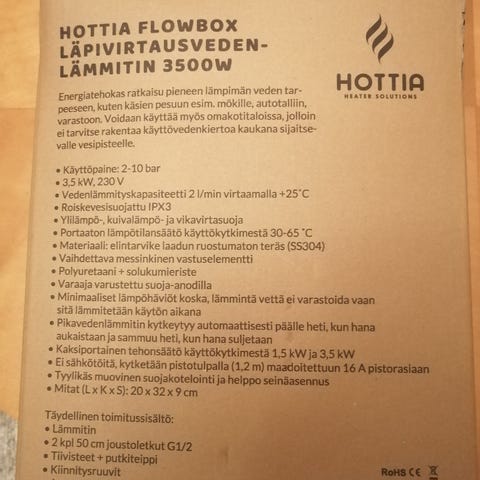 Hottia DIR-1700 infrapunalämmitin myyntiin tarpeettomana.