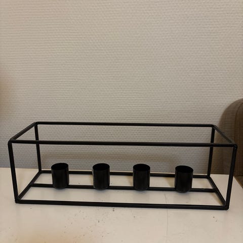 Jysk metallinen kynttilänjalka, jossa on viisi kynttilänpidikettä. Sopii sisustukseen ja kynttilöiden käyttöön.