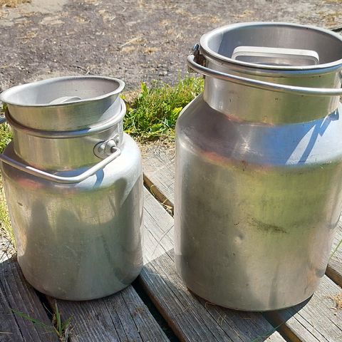 Aikanaan käytössä olleita maitotonkkia. 2 kpl 30 litrasta ja yksi 15 litranen.