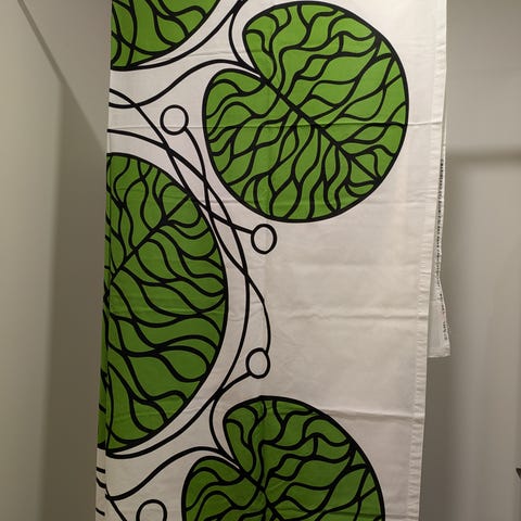 1kpl Marimekko Kaivo verho. Mitat suurinpiirtein: pituus 232cm x Leveys 134cm. Kangas oikein hyvässä kunnossa ja puhdas.