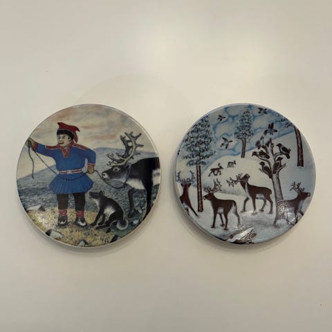 Arabia Porovalas ja Muuttolinnut seinälautaset, valmistettu vuosina 1981-1982. Lautaset ovat posliinia ja niissä on perinteinen suomalainen talvimaisema poroineen ja muuttolintuineen. Lautaset on suunnitellut A. Palmuisto. Lautasten halkaisija on noin 12-15 cm.