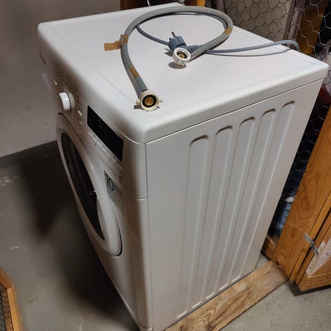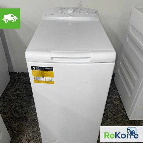 Whirlpool AWE 7100 päältä täytettävä pesukone, kapasiteetti 7 kg. Rempan alta pois. Hyvä ja toimiva peli, mutta kannen reunassa on nappuloiden alla kupruilua ja hieman ruostetta.