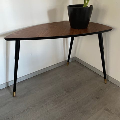 Myydään sohvapöytä laatikolla ja hyllyllä.