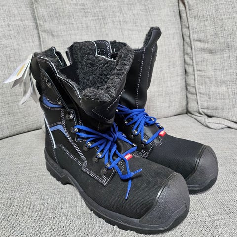 Jalas-saappaat, koko 42. Mustat saappaat, soveltuvat erilaisiin työ- ja ulkoilukäyttöihin. cxs turvakengät kaupan päälle myös uuden veroiset mutta vähän likaiset.