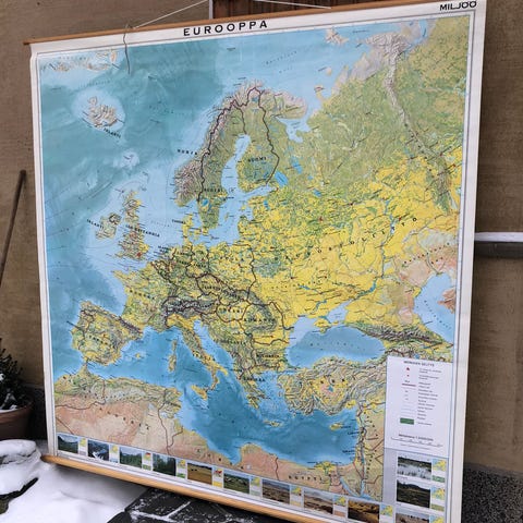 Euroopan kartta ripustettava opetusjuliste, jossa on yksityiskohtaiset aluejakojen värit. Julisteessa on lenkki ripustamista varten. Sopii opetuskäyttöön tai sisustukseen.Tarjoa jos hinta ei miellytä.