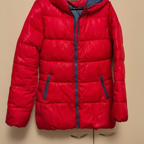 Erittäin siisti ja hyvin pidetty tyttöjen pitkä toppatakki. Hupun karvareunus kiinni napeilla.