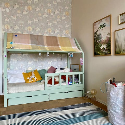 CASTILLO-lastensänky FSC-merkittyä massiivimäntyä. Puunväriset osat ovat käsittelemättömiä ja muut osat maalattuja. Sänky on kuin pieni talo, jossa nukutaan yöt ja leikitään päivät. Nukut kuin mökissä! Yhdistä sänkyyn patja 90x200 cm. Patja ei sisälly toimitukseen. Osittain koottava.