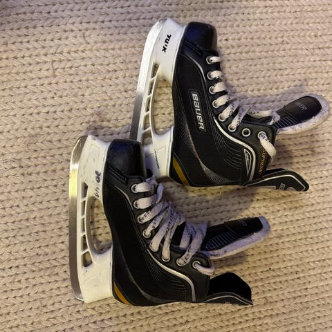 Myydään erittäin hyväkuntoiset lasten Bauer Supreme M1 -merkkiset jääkiekkoluistimet, koko 3.5, vastaa kengän kokoa 36,5, 23,1cm.