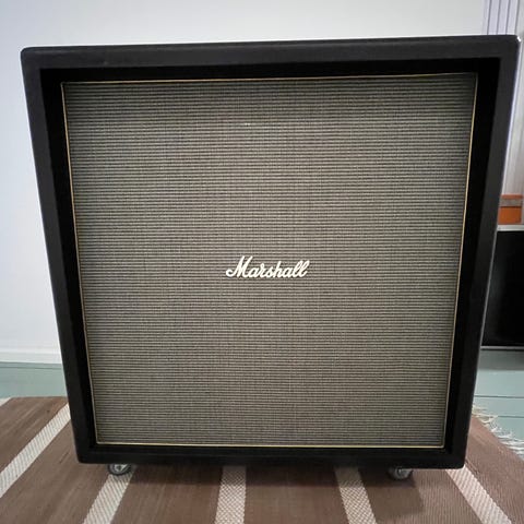 Marshall 1960A kaiutinkaappi josta löytyy 4 Celestion G12T-75 Elementtiä. Valmistettu Englannissa.