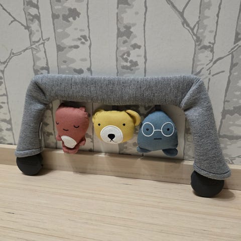 Myynnissä myös BabyBjörn Bouncer Bliss sitteri sekä siihen sopiva lelu.