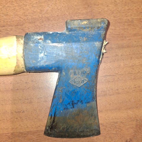 Kuvien kirves ja pokara. Kirveen varressa oli kurkkumätää, joten sen sahasin poikki. Pokara vaatii myös uuden varren. Huom! Yhteishinta 30e. Nouto Humppilasta tai postit 9,90e.