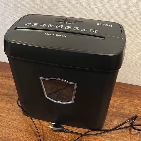 Pavo S-12 paperisilppuri, jossa on musta väritys. Laite on tarkoitettu paperin silppuamiseen ja siinä on virtajohto. Tuotteen tekniset tiedot löytyvät takapuolen merkinnästä.
